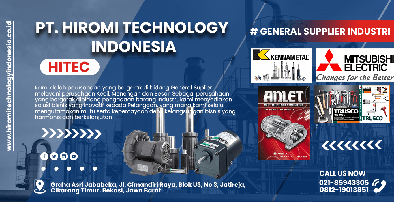 PT. Hiromi Technology Indonesia adalah perusahaan yang bergerak di bidang General Supplier melayani perusahaan Kecil, Menengah dan Besar, Sebagai perusahaan yang bergerak dibidang pengadaan barang Industri, kami menyediakan solusi bisnis yang inovatif kepada Pelanggan, yang mana kami selalu mengutamakan mutu serta kepercayaan demi kelangsungan bisnis yang harmonis dan berkelanjutan. Kami menyediakan berbagai alat industri seperti Cutting Tools, Arbor Sistem, Induction Motor, Root Blower, Gas Spring, Electrical Component.